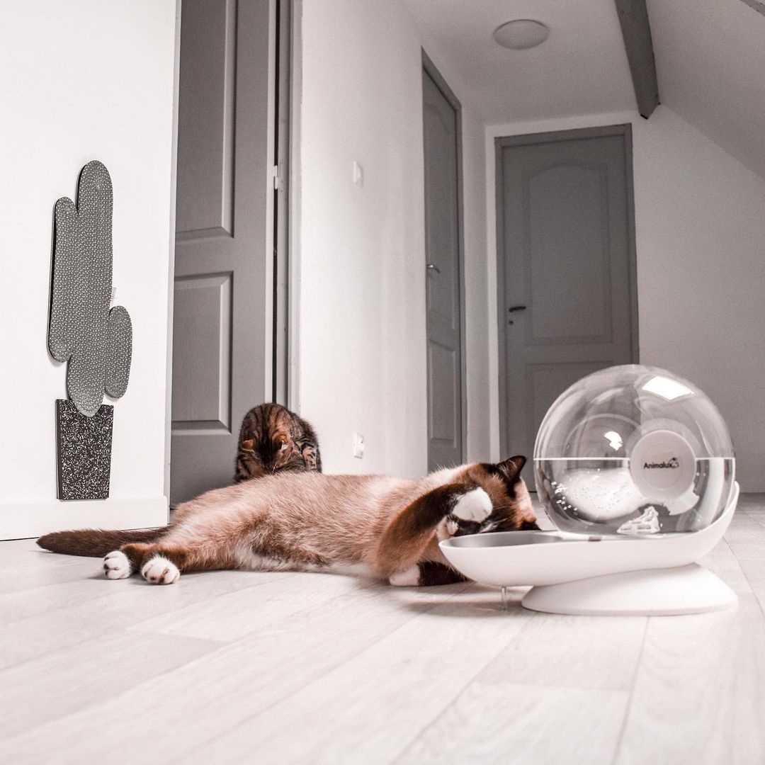 Assurez la sécurité de votre animal avec une fontaine à eau pour chat qui fonctionne sans fil électrique et sans pompe.