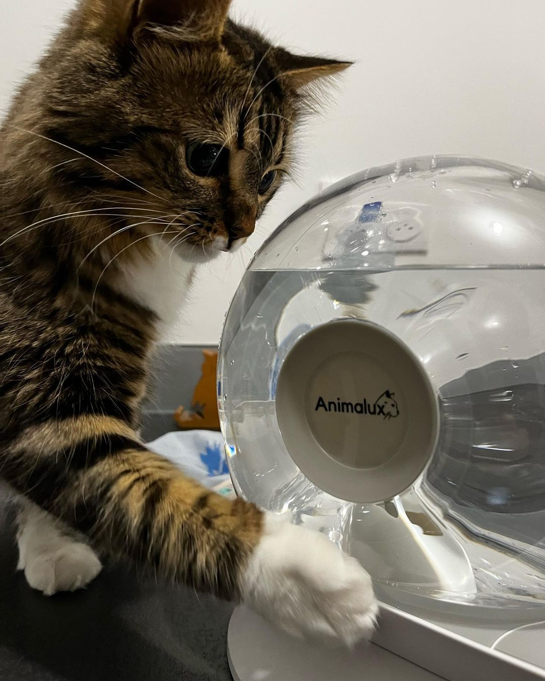 ⓶ Nos félins ne sont pas attirés par l'odeur de l'eau mais par sa propreté. Comme l'eau de pluie qui est naturellement saine, les chats recherchent une eau claire et sans danger. L'AquaFons est idéalement conçu pour lui apporter une eau saine et paisible.
